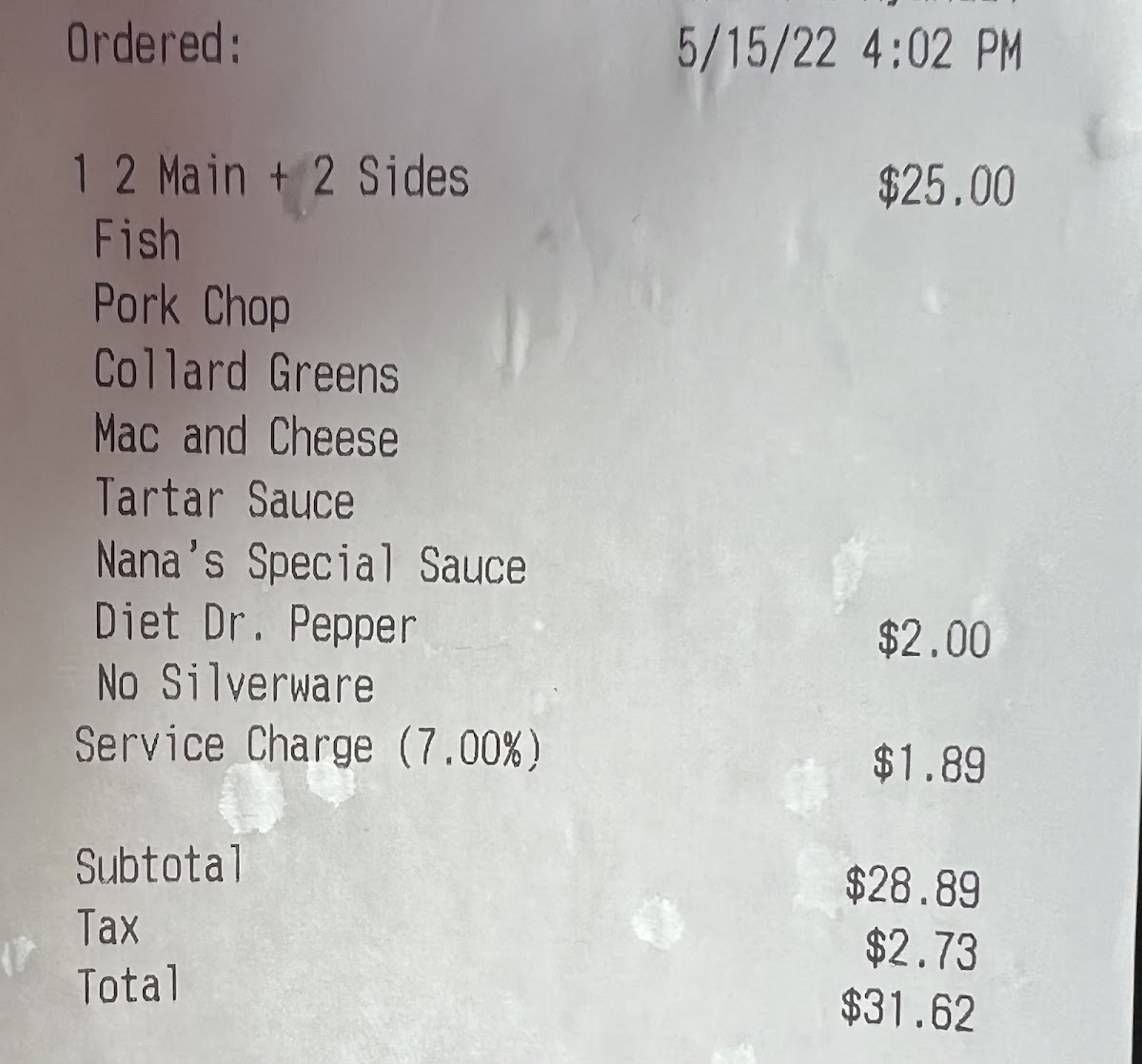 Side Items and Accompaniments complement the mains with traditional Southern sides, including cornbread and various sauces like ketchup, ranch, BBQ, homemade sweet tartar sauce (Nana's Special Sauce), hot sauce, cocktail sauce, chicken gravy, and oxtail gravy. These allow customization and additional flavor options.